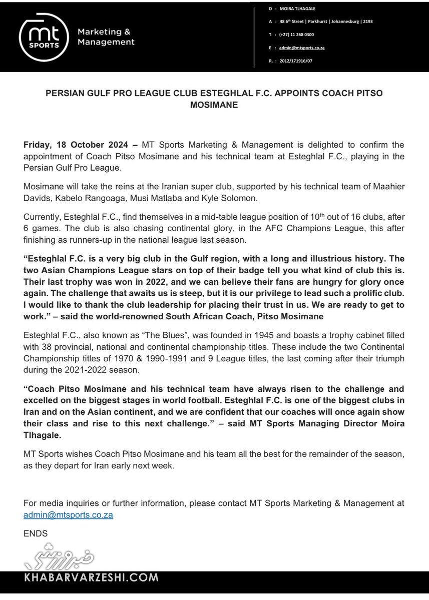 خبرگزاری میزان – بر اساس گزارش سایت رسمی فدراسیون فوتبال، تیم فوتبال بانوان خاتون بم در مرحله دوم لیگ قهرمانان آسیا امروز (یکشنبه، ۱۵ مهر) از ساعت ۱۲ و ۳۰ دقیقه به مصاف ملبورن سیتی استرالیا رفت و در نهایت این بازی با نتیجه دو بر یک به سود ملبورن سیتی استرالیا به پایان رسید.