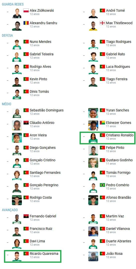 کوارشمای ۱۲ ساله پسر همان بازیکنی است که شما میشناسید. کریستیانو رونالدوی ۱۲ ساله اما هیچ نسبتی با بهترین گلزن تاریخ فوتبال ندارد. رونالدو البته خودش هم شهرت در فوتبال را مدیون اسپورتینگ است و با درخشش در این تیم توانست در سال ۲۰۰۳ راهی منچستریونایتد شود.