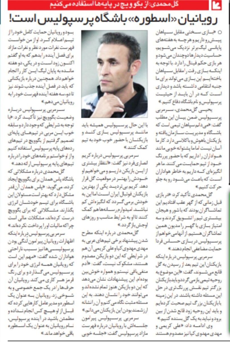 به گزارش خبر ورزشی، یحیی گل محمدی در نیمه دوم سال ۱۳۹۱ جانشین مانوئل ژوزه شده و هدایت پرسپولیس را بر عهده گرفت. تصمیمی که توسط محمد رویانیان مدیرعامل وقت باشگاه پرسپولیس اتخاذ شد. در همین راستا یحیی طی مصاحبه ای که ۲۹ بهمن سال ۹۱ در خبر ورزشی نیز منتشر شد، حرفی را بر زبان آورد که زمان خودش سر و صدای بسیار زیادی راه انداخت و با انتقاد گروهی از پرسپولیسی‌ها نیز مواجه شد.